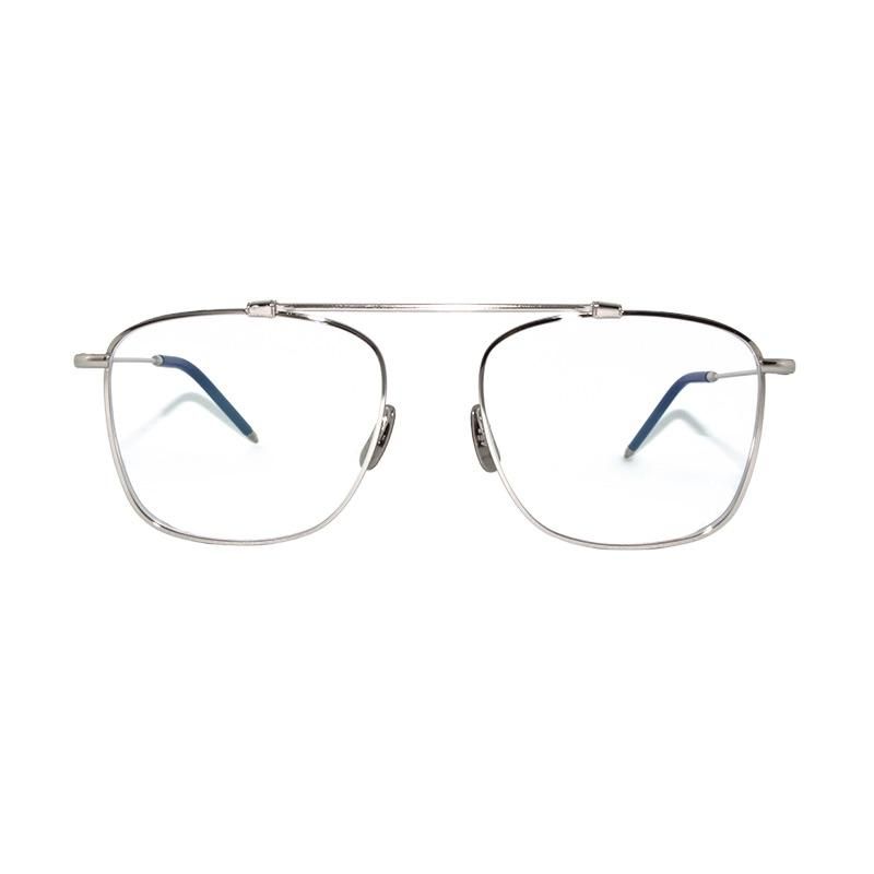 オールメタルのハイブローフラットブリッジスクエアフレーム。