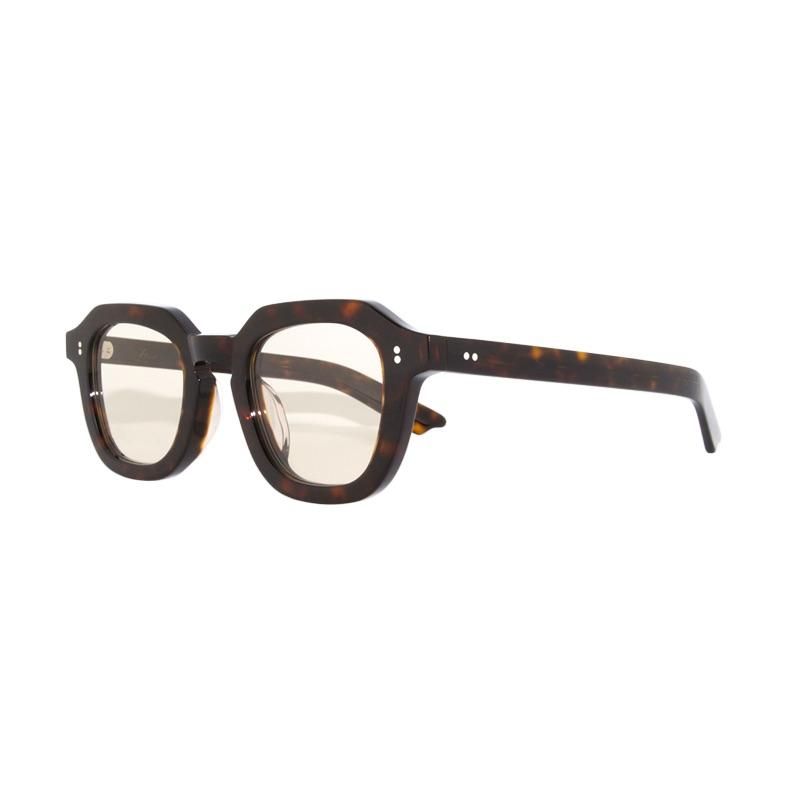 ヨーロッパヴィンテージを独自に解釈し太いリムと小ぶりなレンズシェイプをミックスさせボリュームを持たせたモデル。