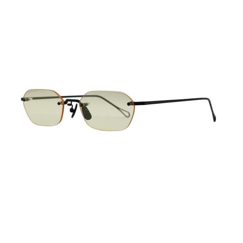 繊細且つ大胆にカッティングした個性的なヘキサゴンシェイプのレンズを引き立てるようなリムレスタイプの”VATH”。