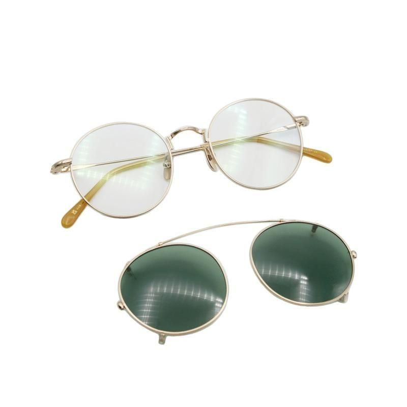 レンズシェイプはクラシックなラウンド型のメタルフレームで、ブリッジやテンプルの一部に繊細な彫金模様が施され、さり気なくラグジュアリーな雰囲気を持った仕上がり。